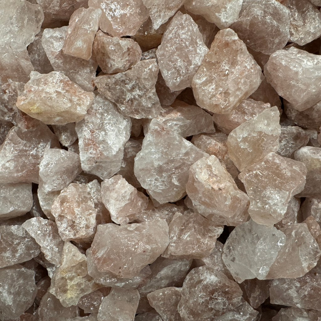 Ruw aardbeienkwarts, volledig onbewerkt. Elke steen is circa 2 tot 4 cm groot.