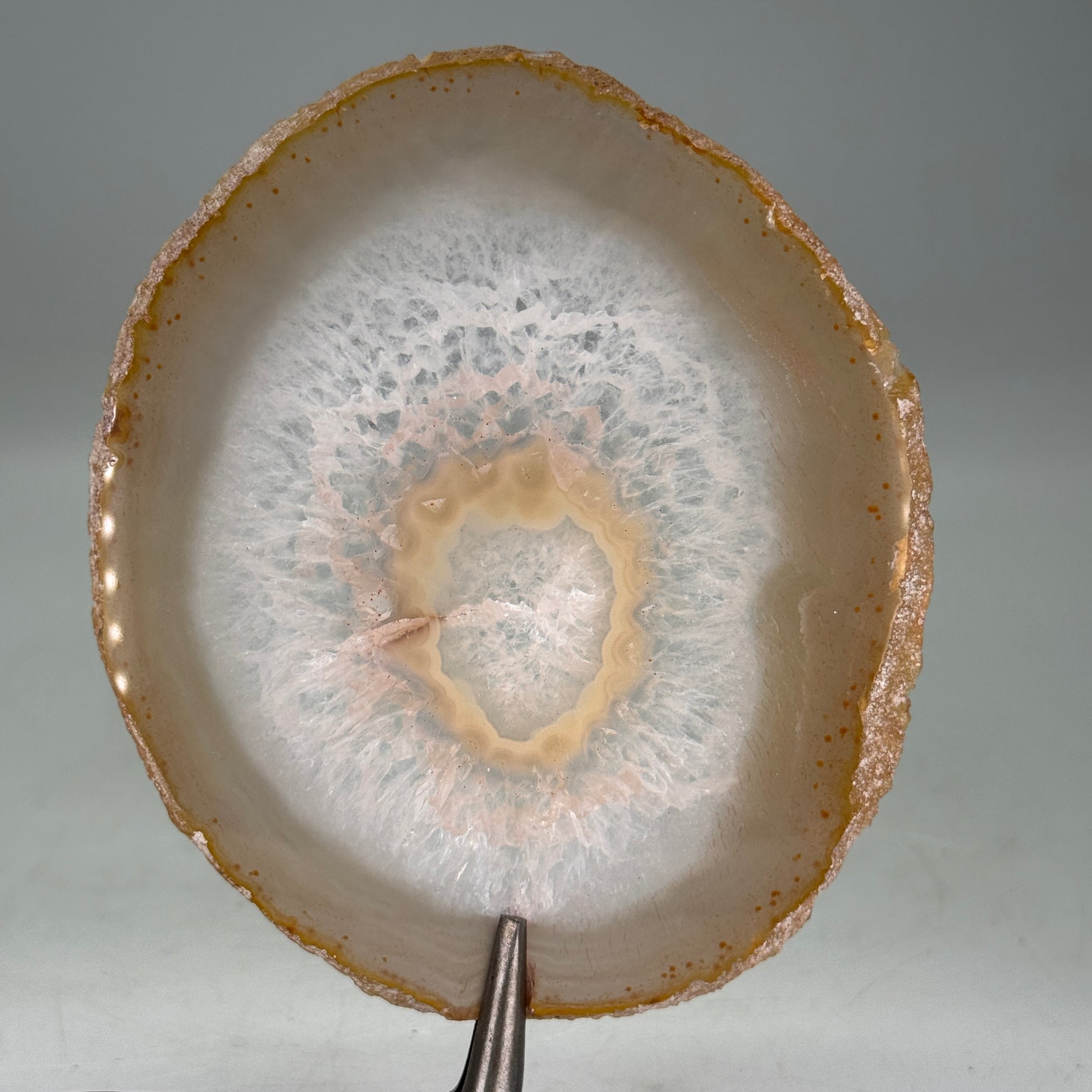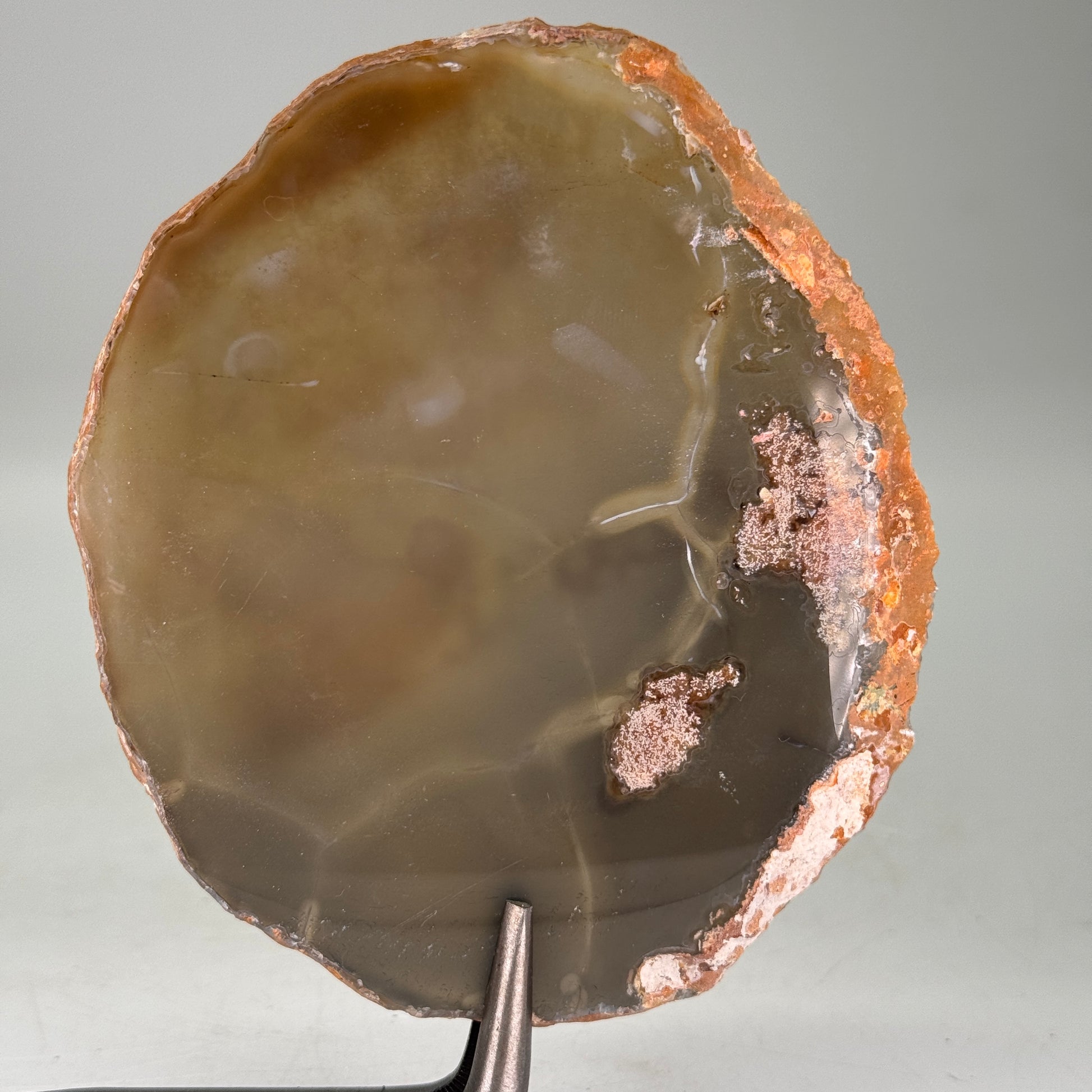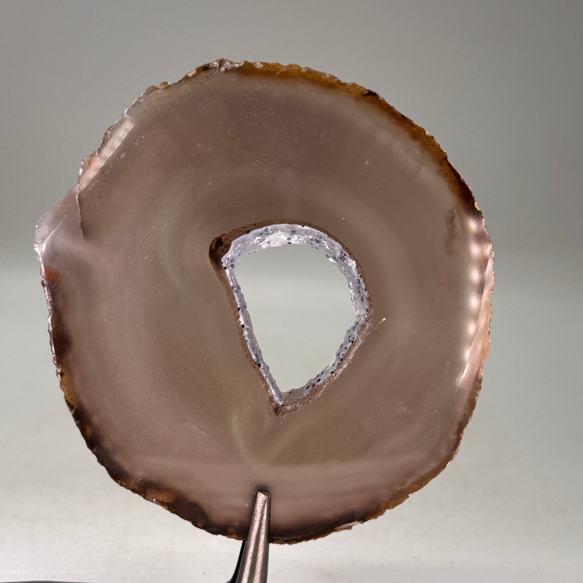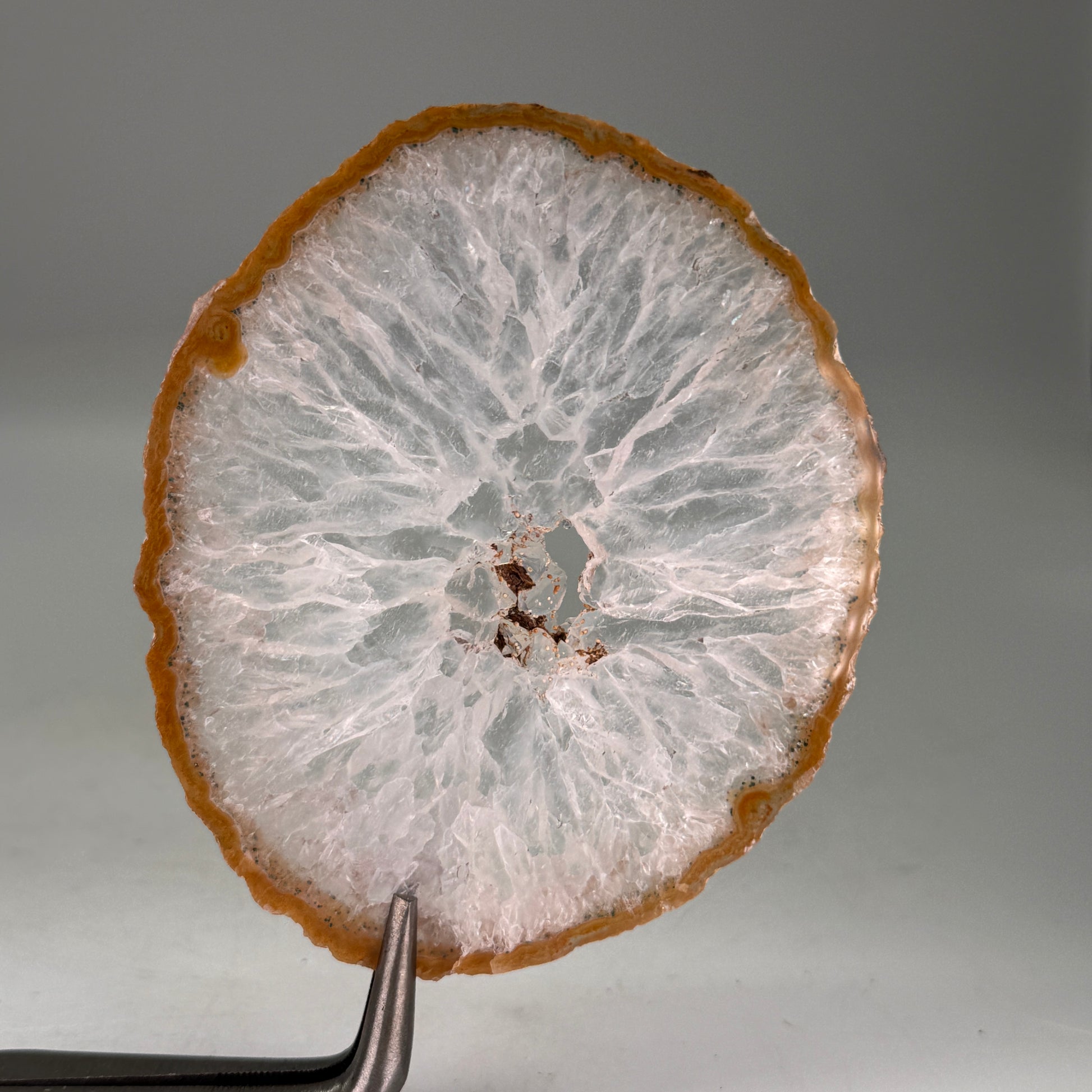 Dankzij de dikte van ca. 0,5 cm komt de agaat prachtig tot zijn recht wanneer je de schijf voor het licht houdt, de lijnen, patronen en kleuren worden dan extra helder zichtbaar.