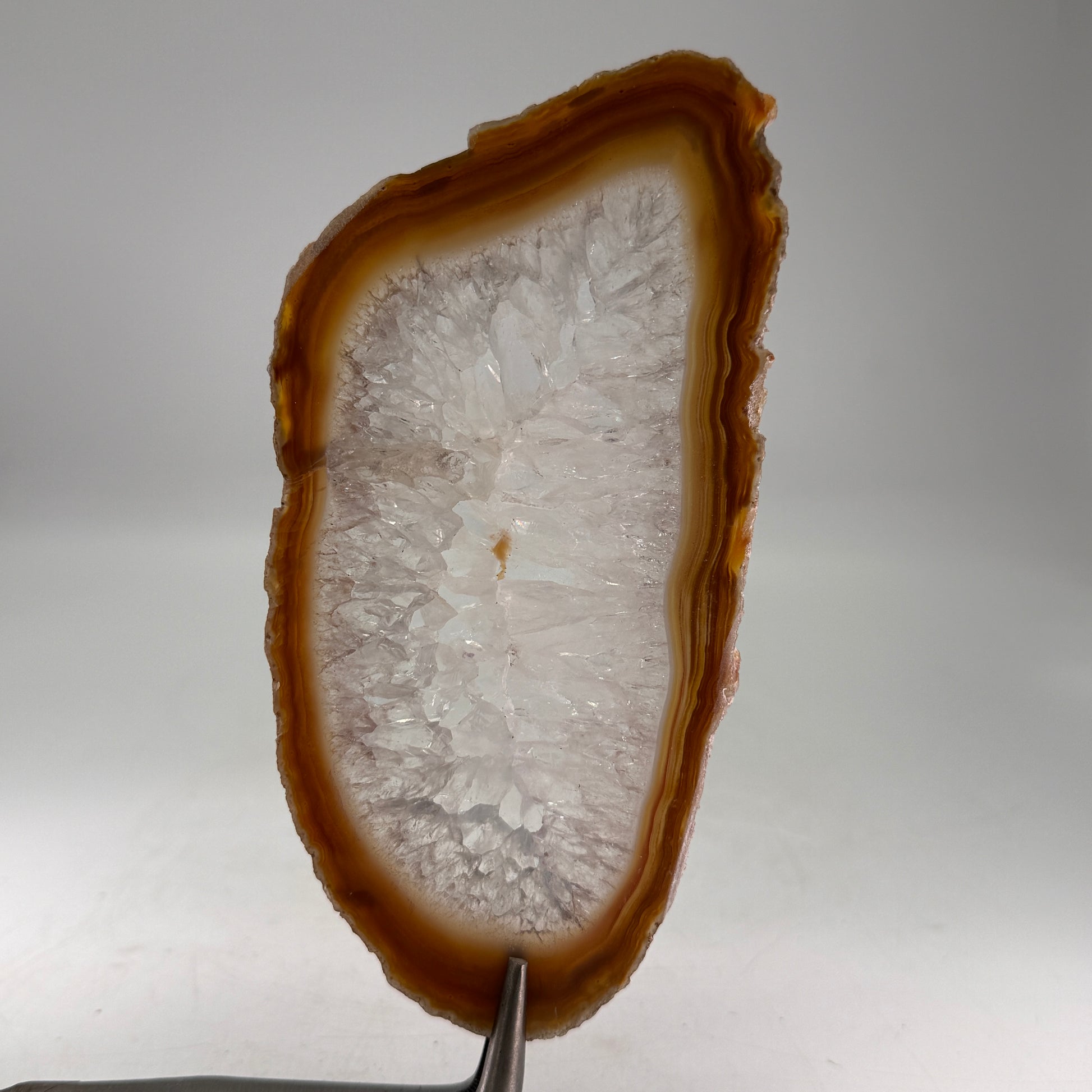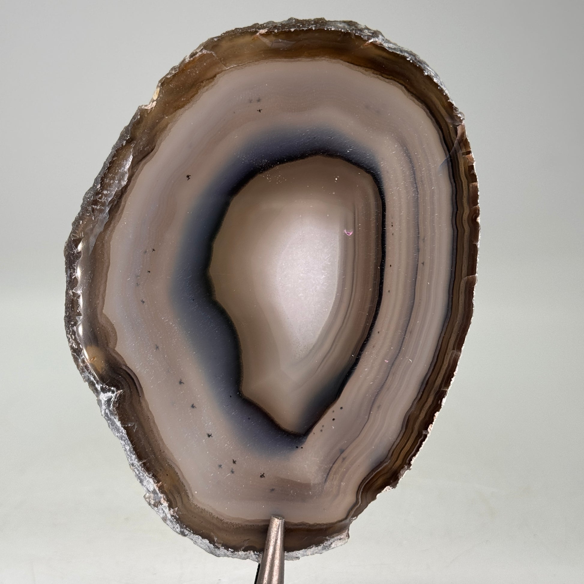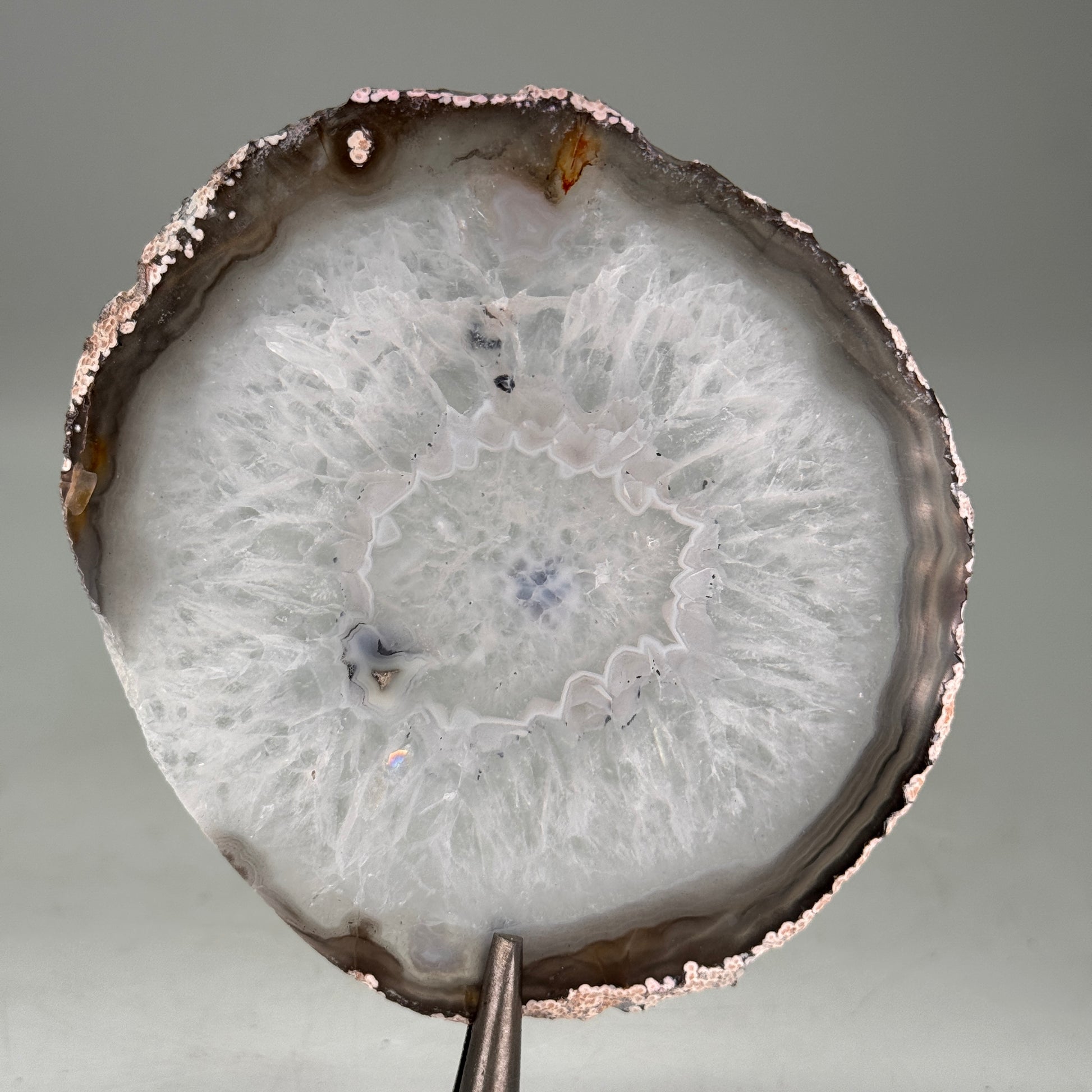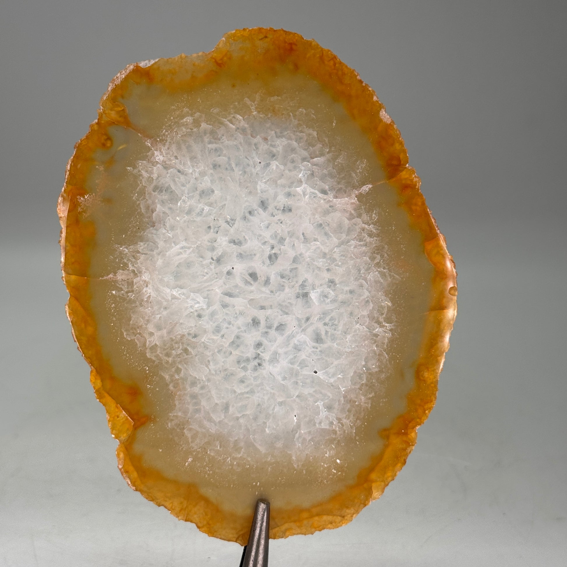 Dankzij de dikte van ca. 0,5 cm komt de agaat prachtig tot zijn recht wanneer je de schijf voor het licht houdt, de lijnen, patronen en kleuren worden dan extra helder zichtbaar.