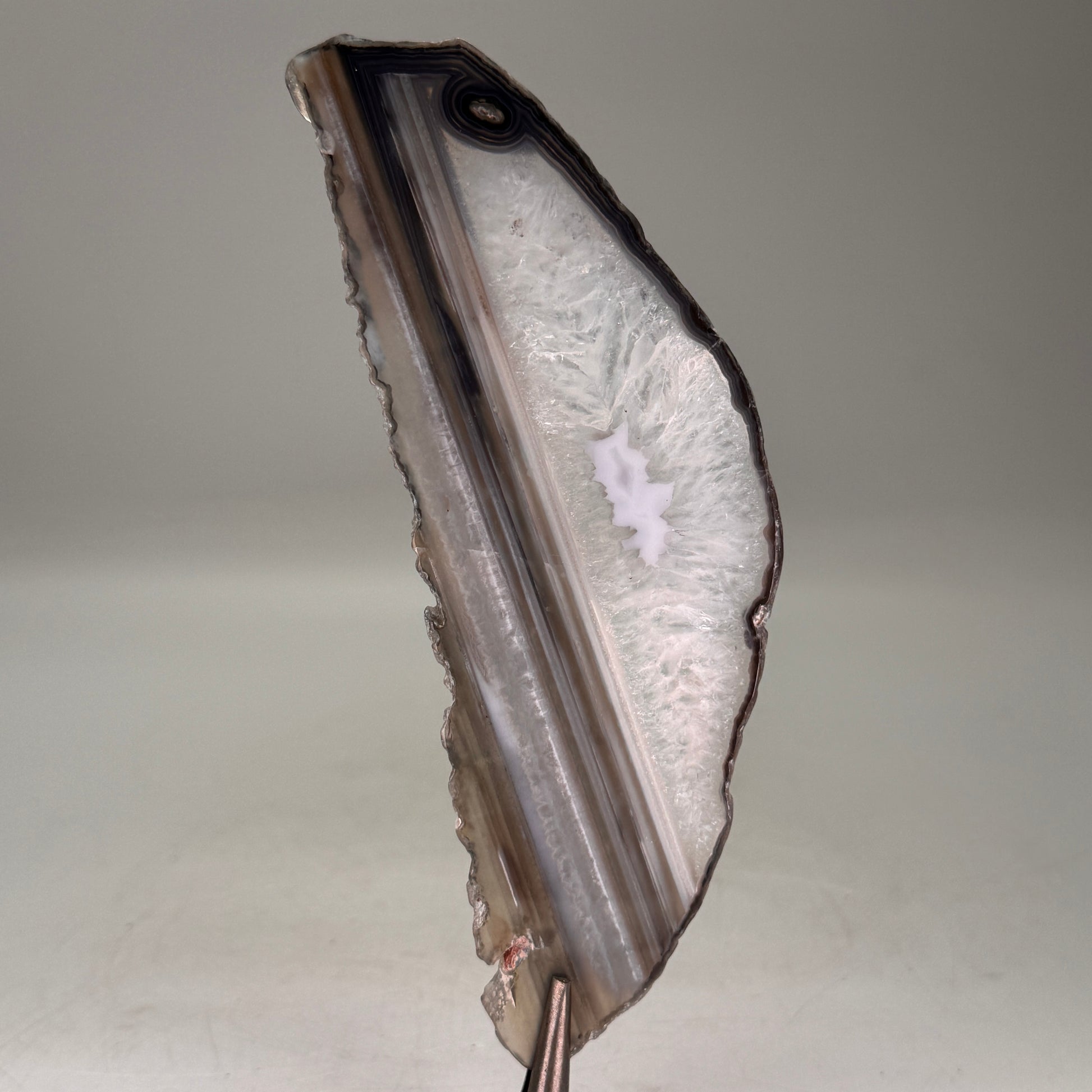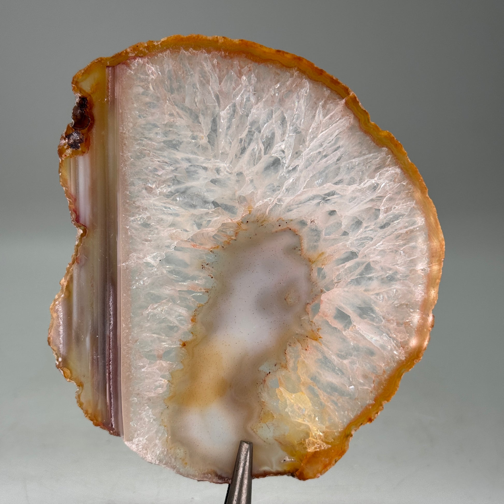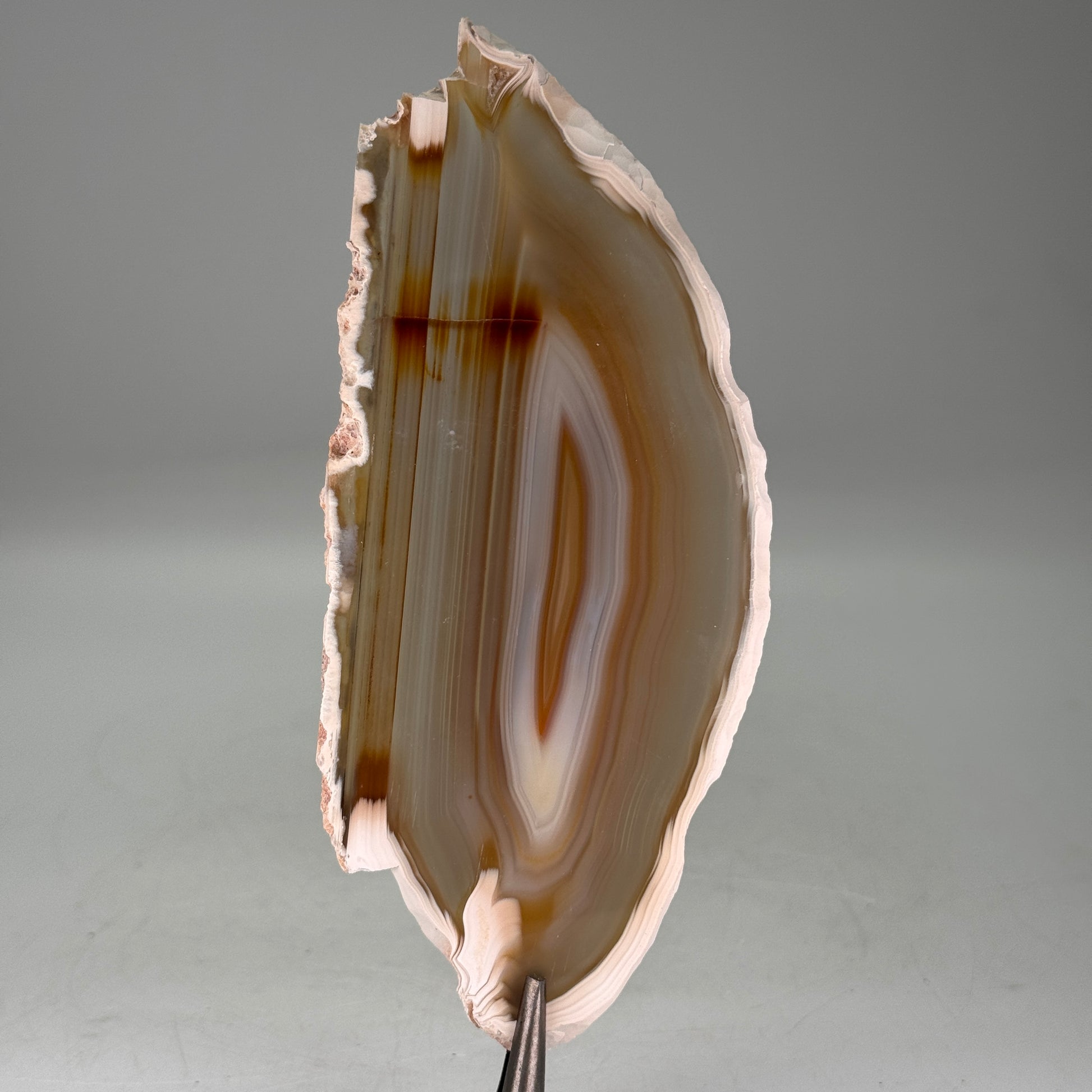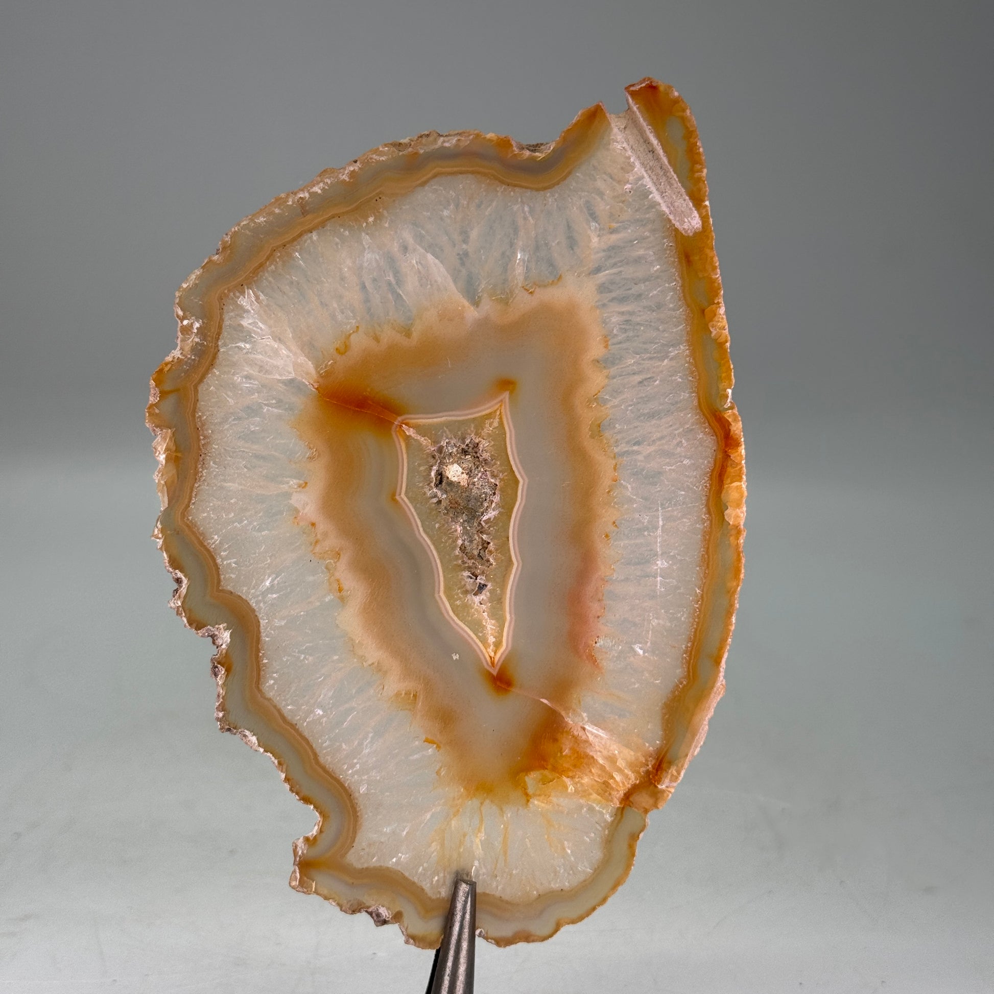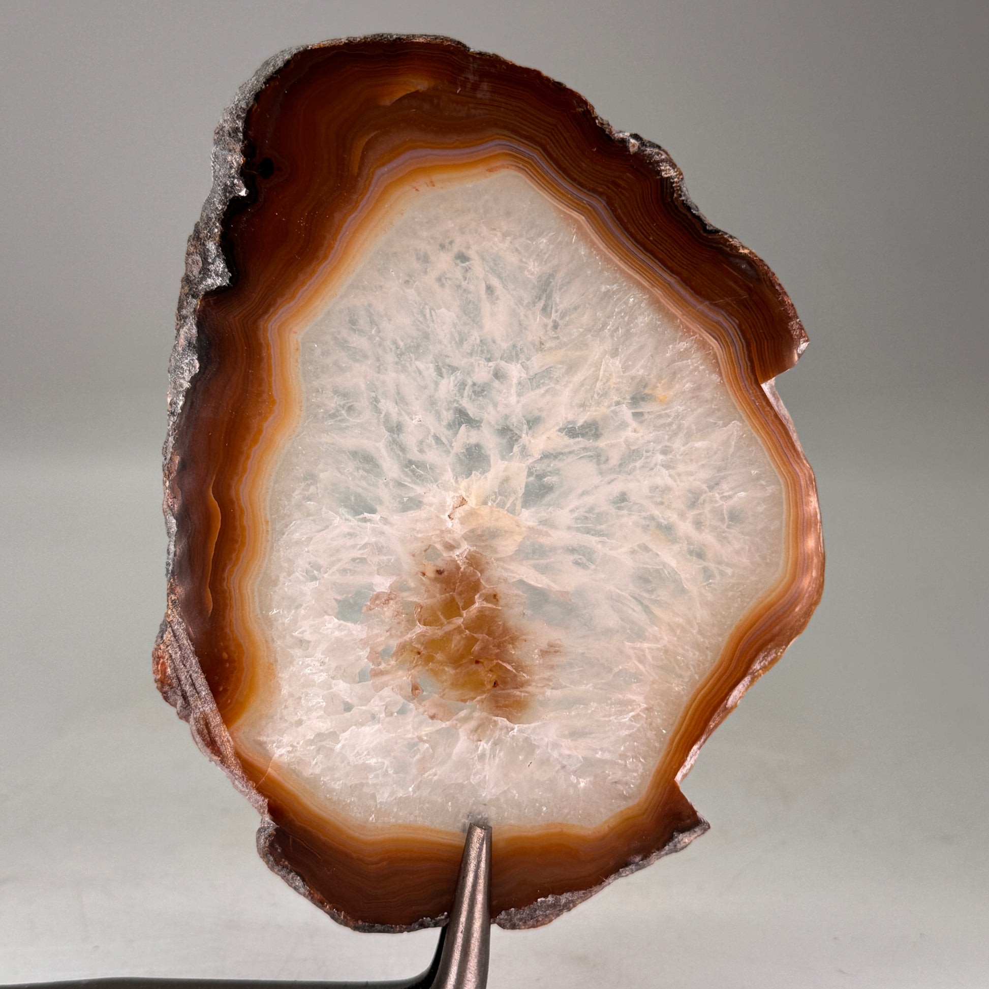 Dankzij de dikte van ca. 0,5 cm komt de agaat prachtig tot zijn recht wanneer je de schijf voor het licht houdt, de lijnen, patronen en kleuren worden dan extra helder zichtbaar.