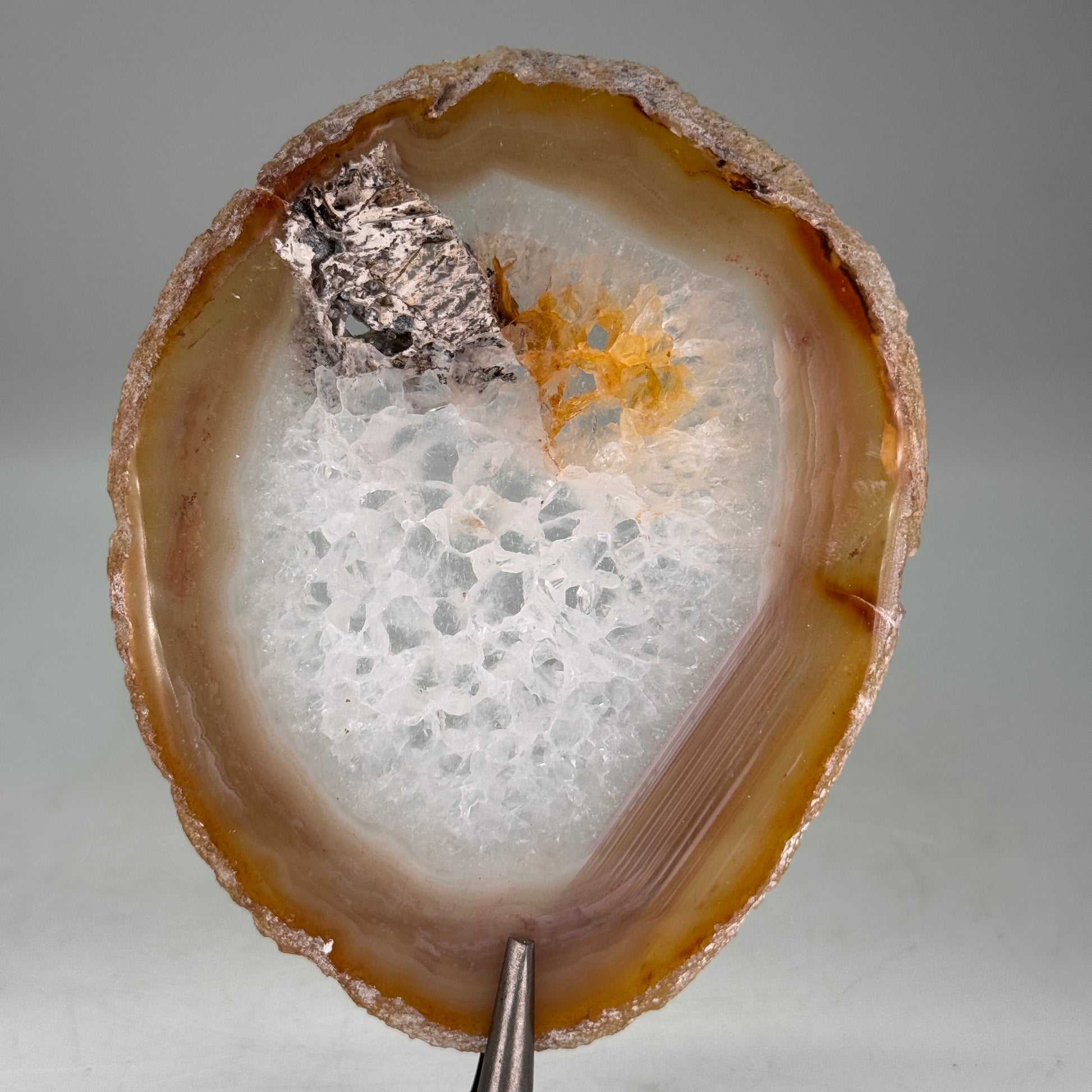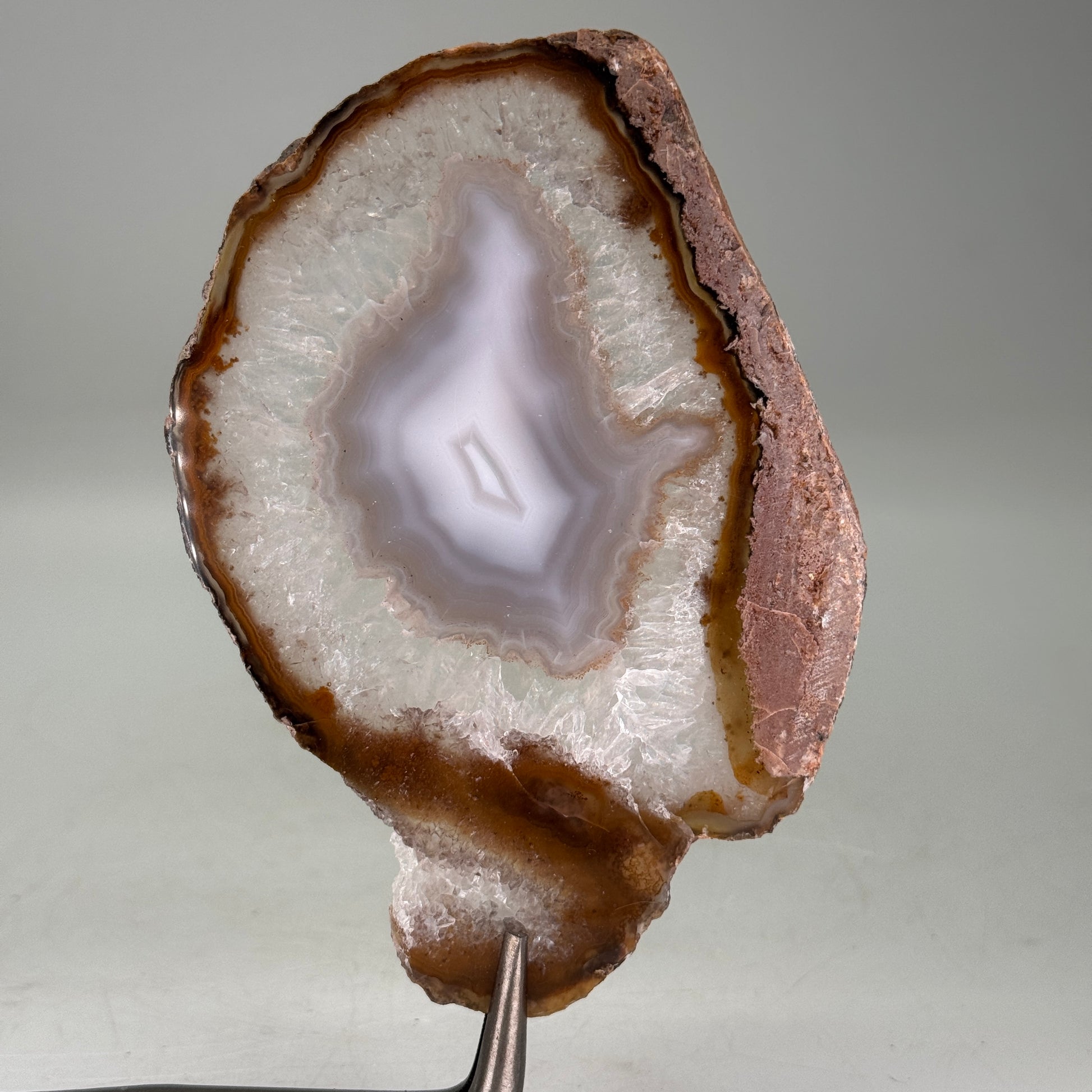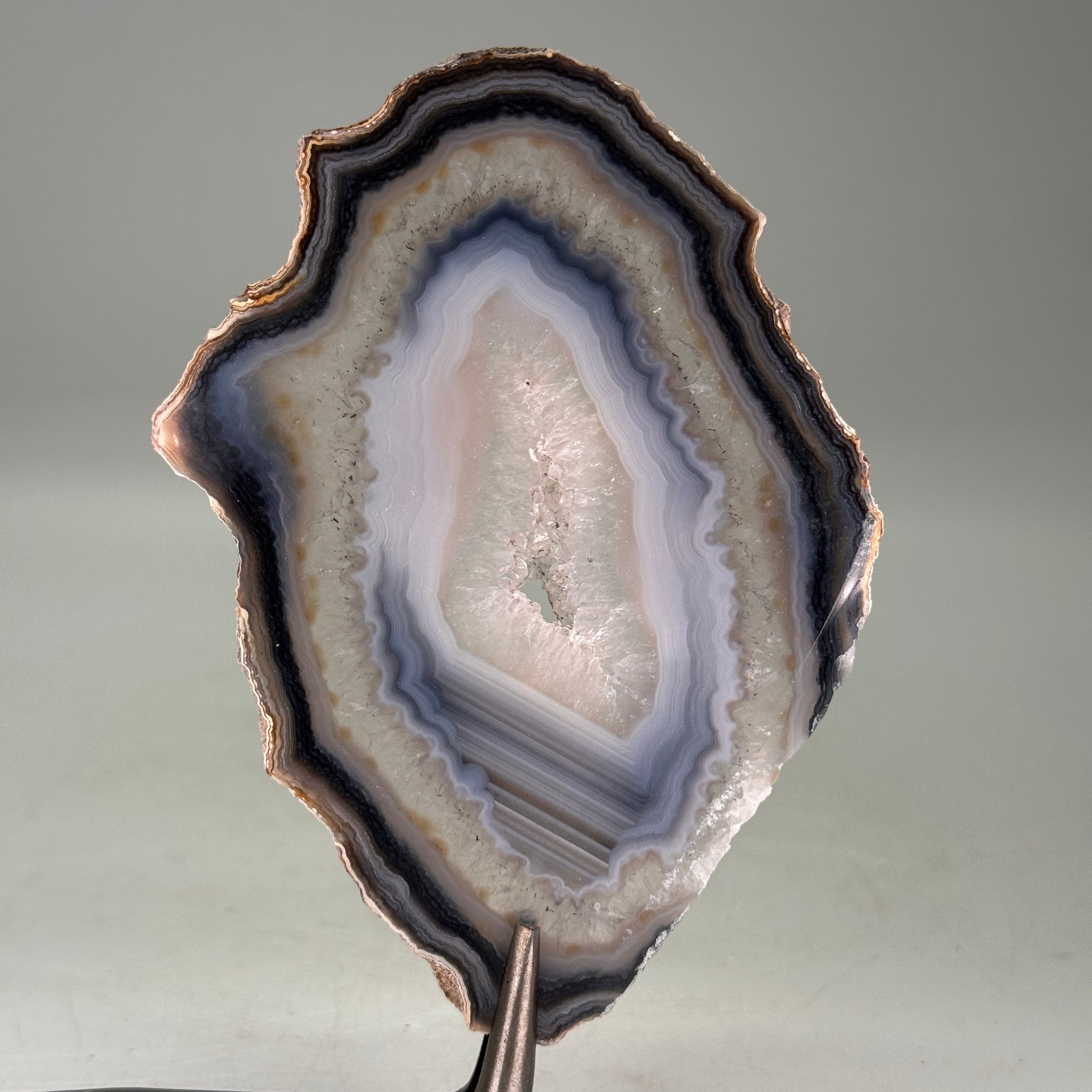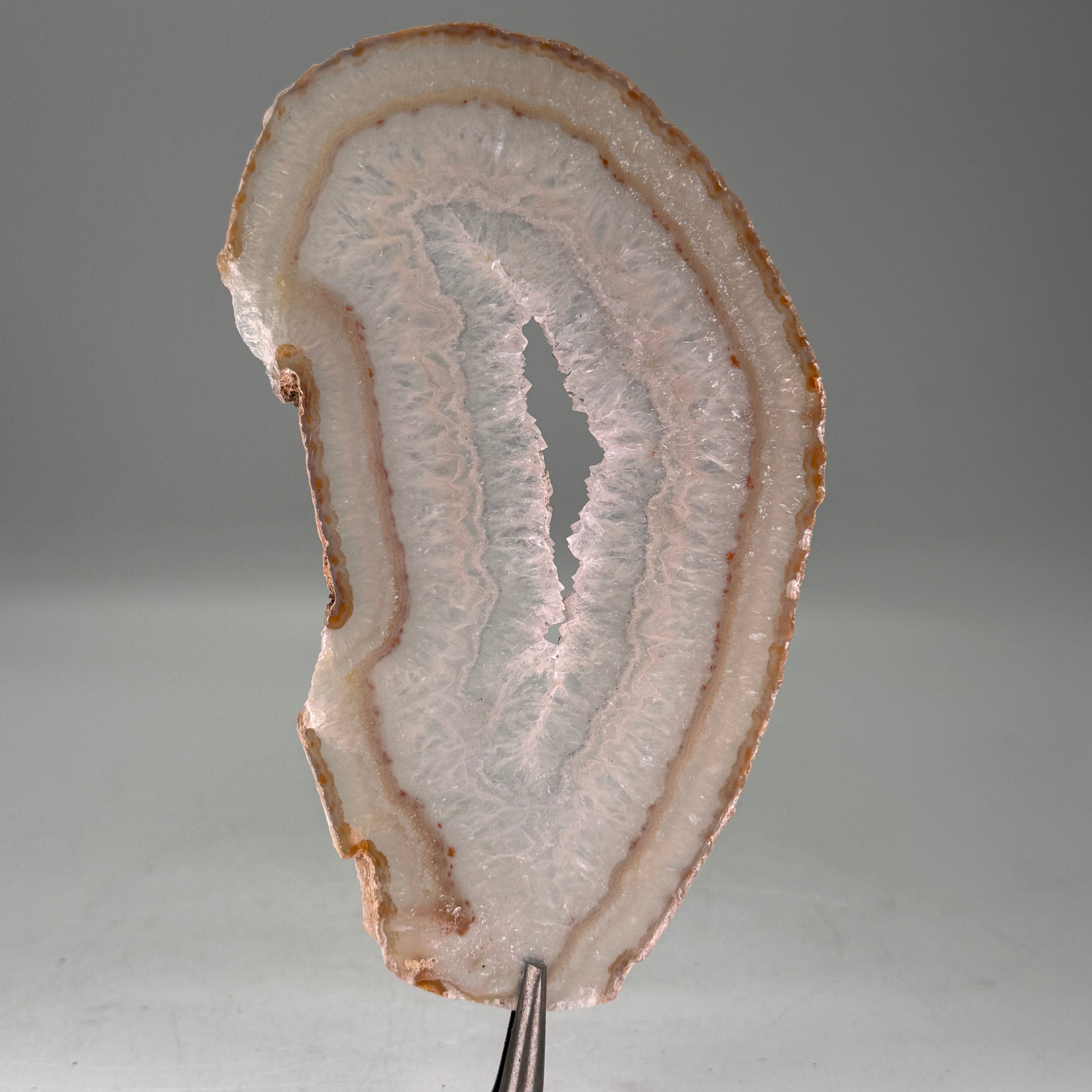 Dankzij de dikte van ca. 0,5 cm komt de agaat prachtig tot zijn recht wanneer je de schijf voor het licht houdt, de lijnen, patronen en kleuren worden dan extra helder zichtbaar.