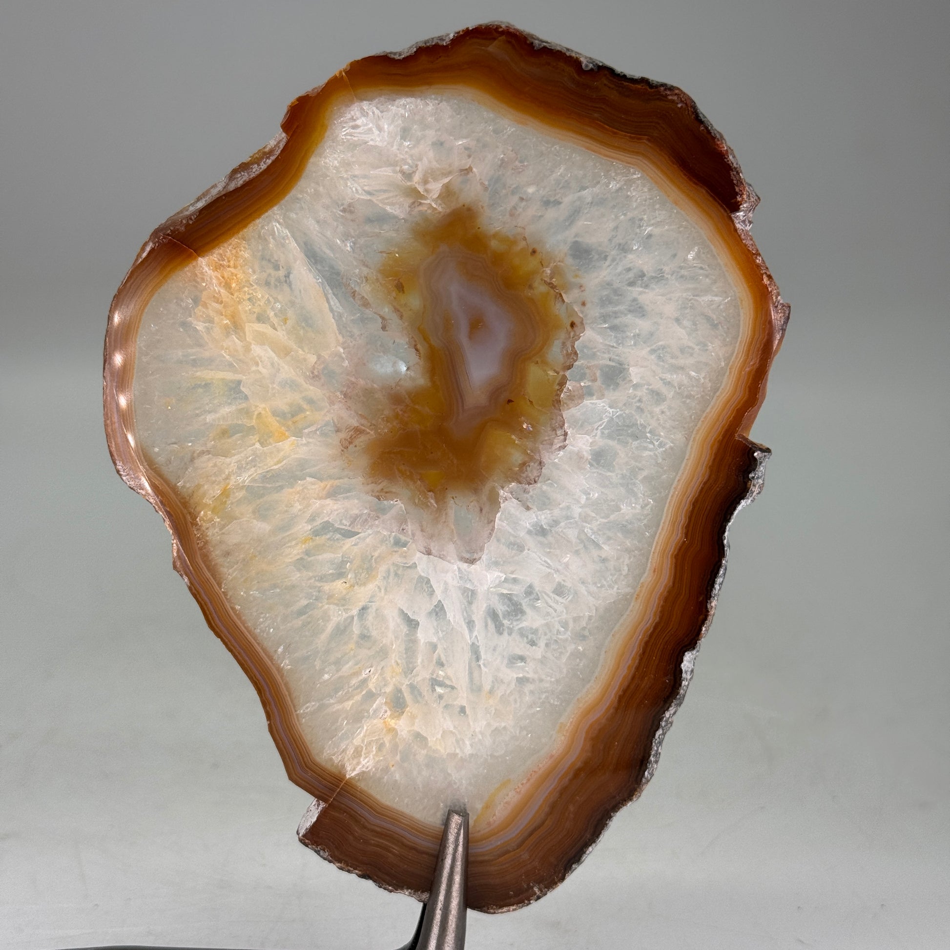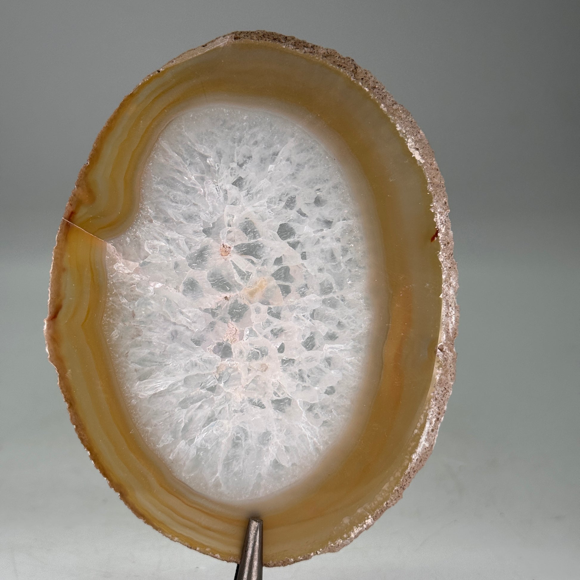 Prachtige natuurlijke agaatschijven, aan beide zijden gepolijst voor een helder zicht op de unieke patronen en kleurstructuren. Elke schijf is volledig natuurlijk en afkomstig uit Brazilië.
