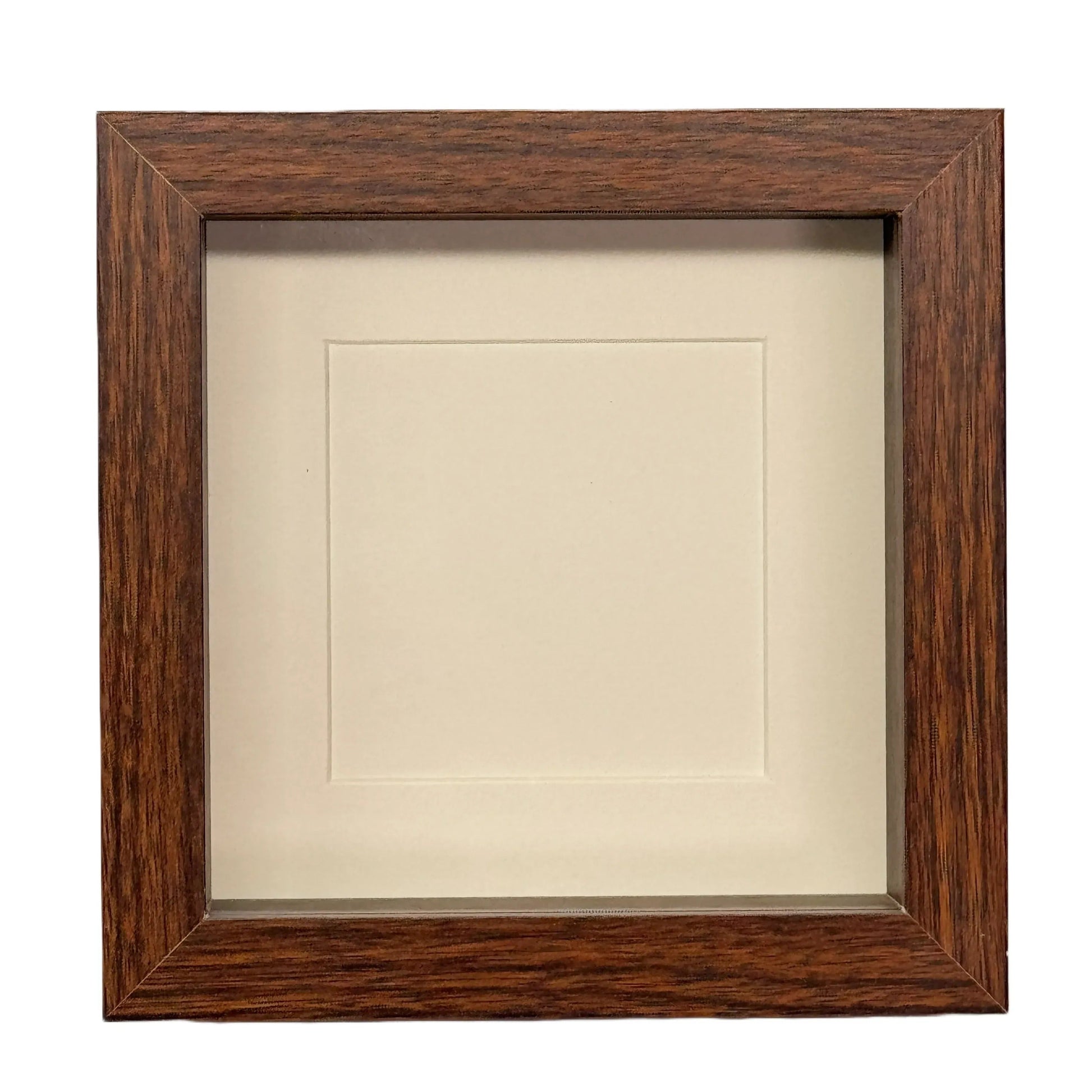 Diepe lijst van 16x16x4,5 cm in de kleur walnoot of zwart, inclusief witte passe-partout.