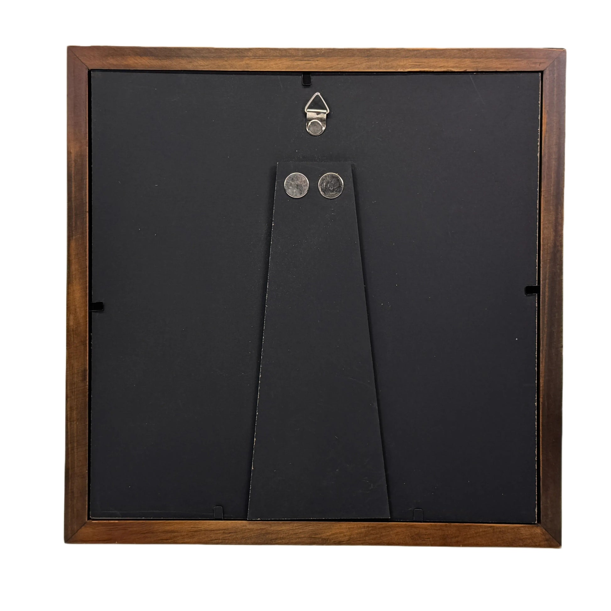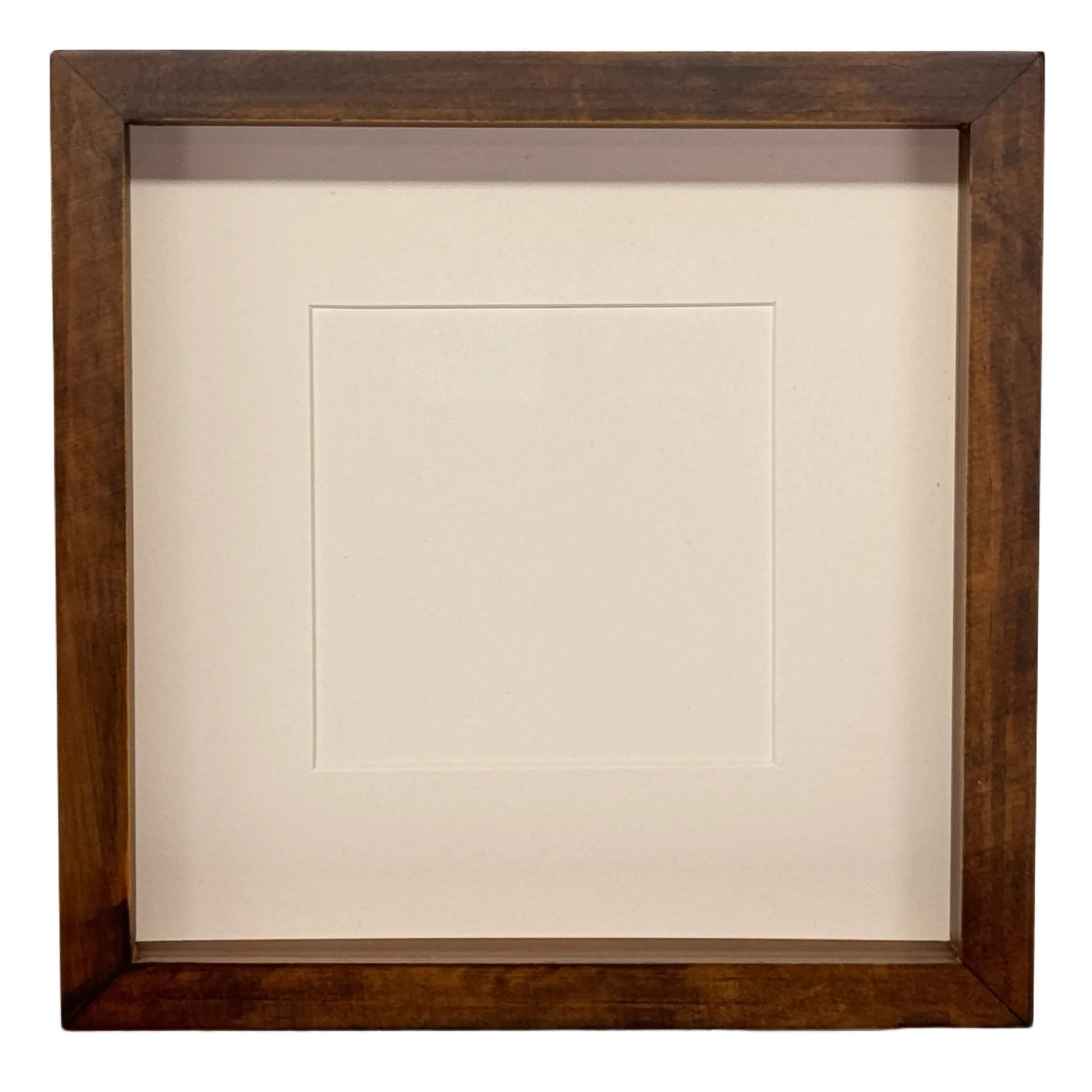 Diepe lijst van 25x25x4,5 cm in de kleur walnoot, inclusief witte passe-partout.