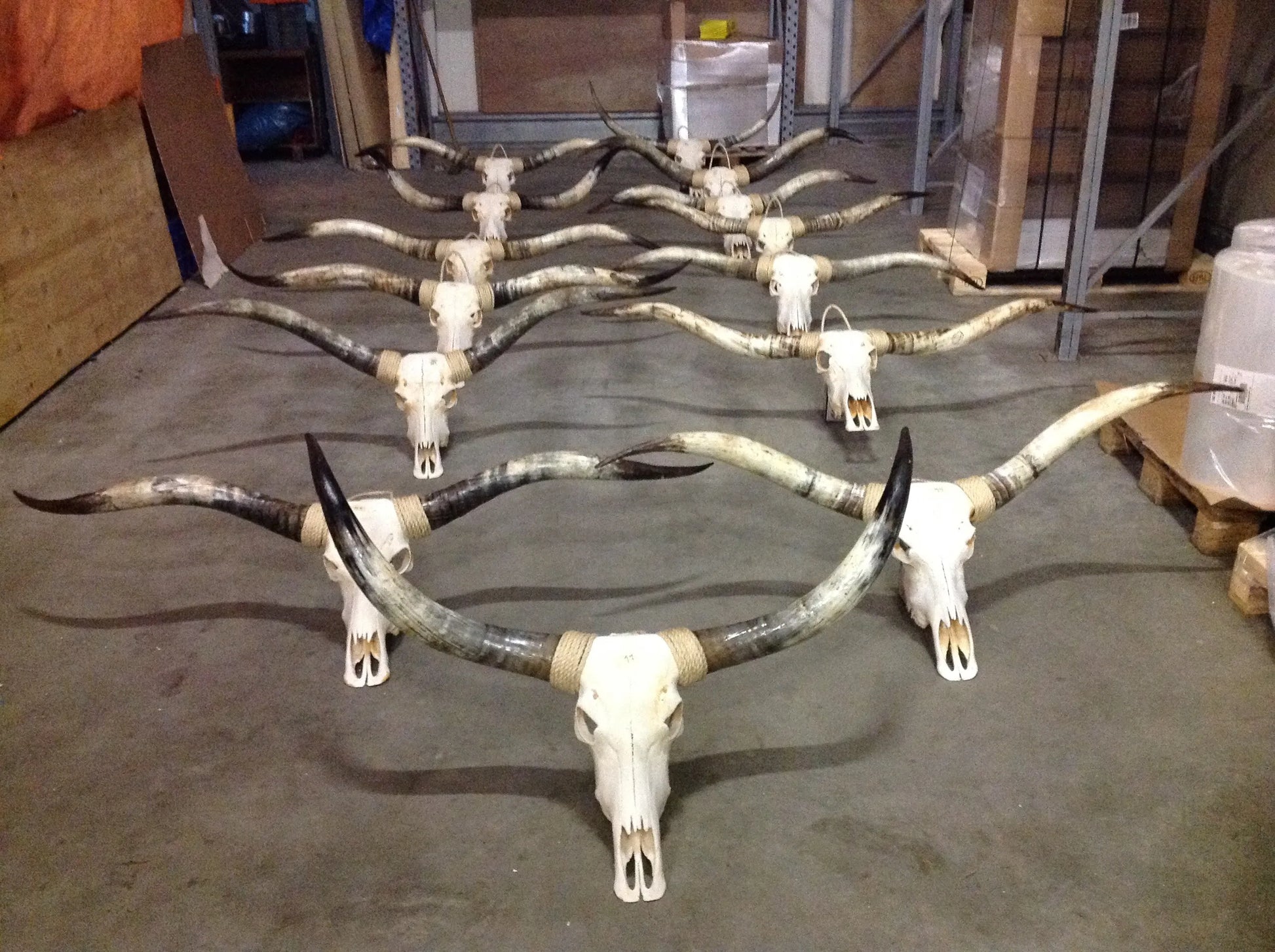 Authentieke, onbewerkte longhorn schedel met natuurlijke hoorns uit eigen import.