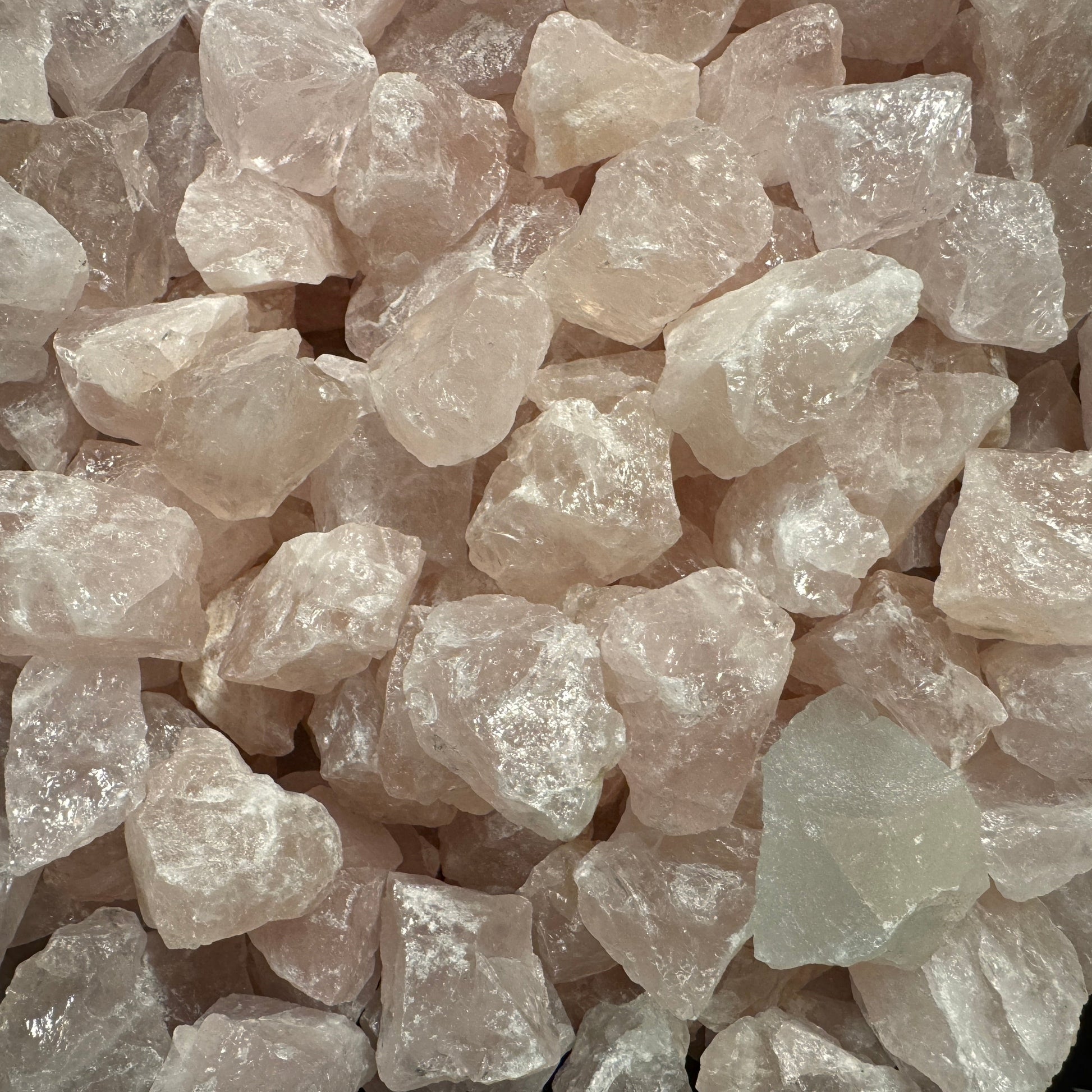 Circa 3 tot 4 cm ruwe Rozenkwarts uit Brazilië.