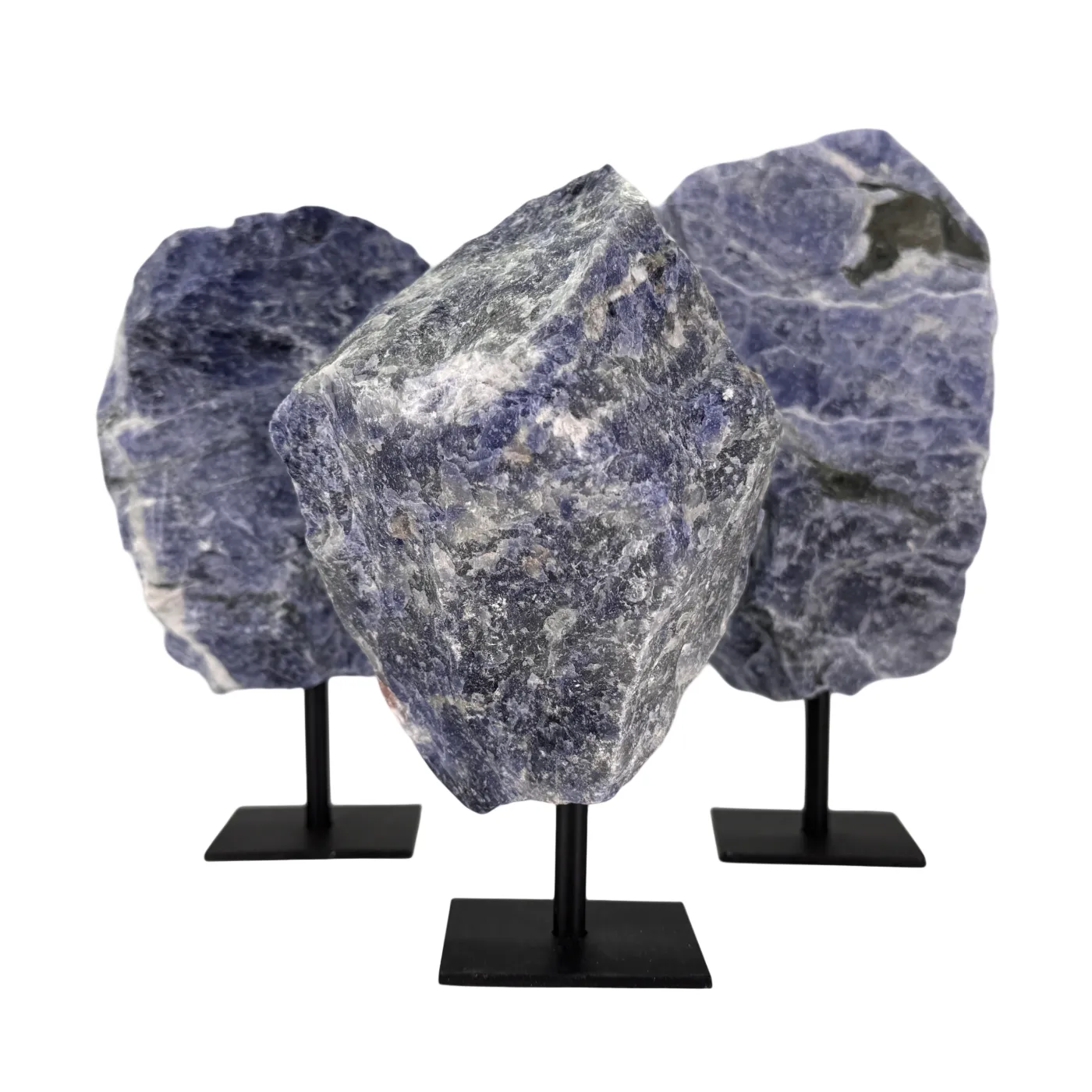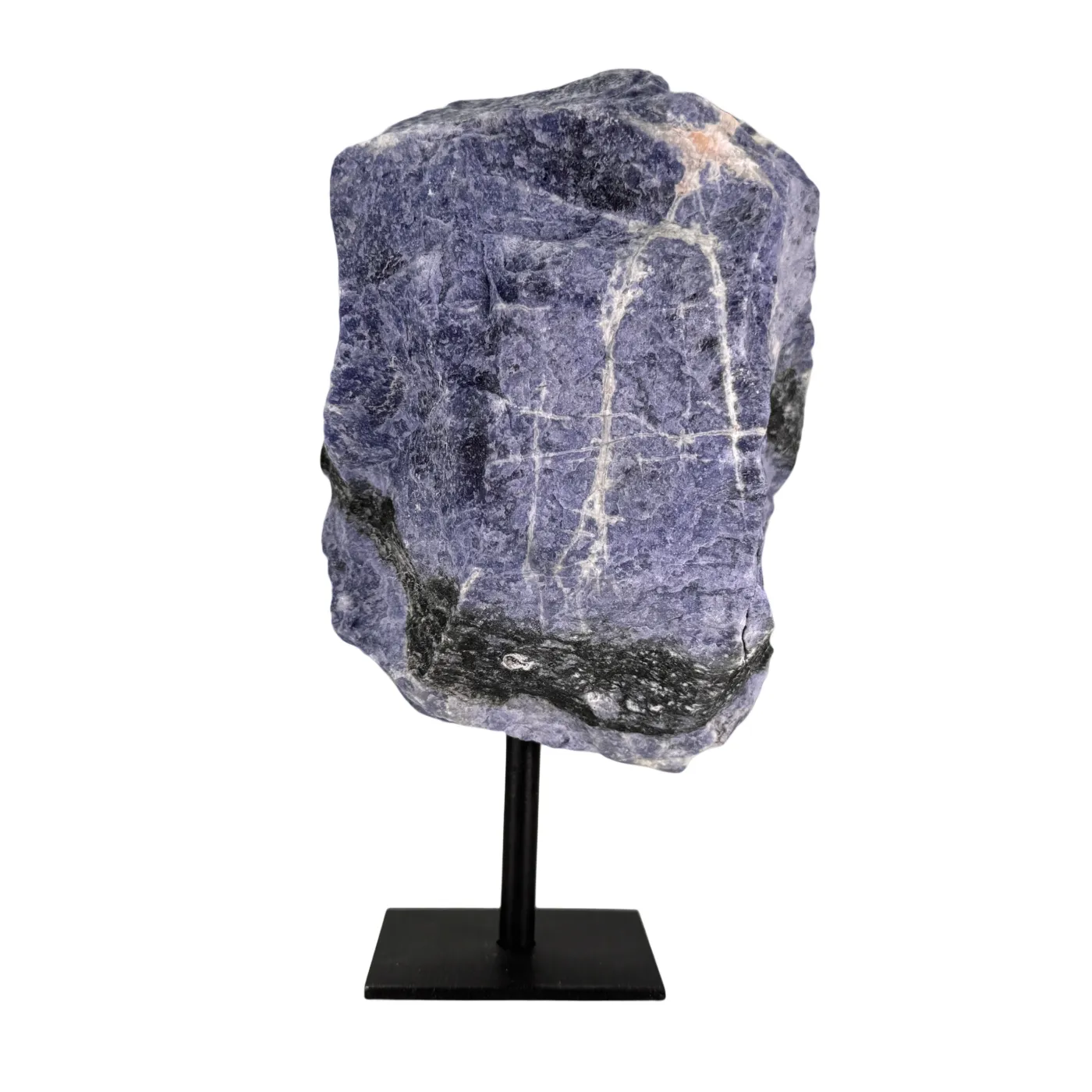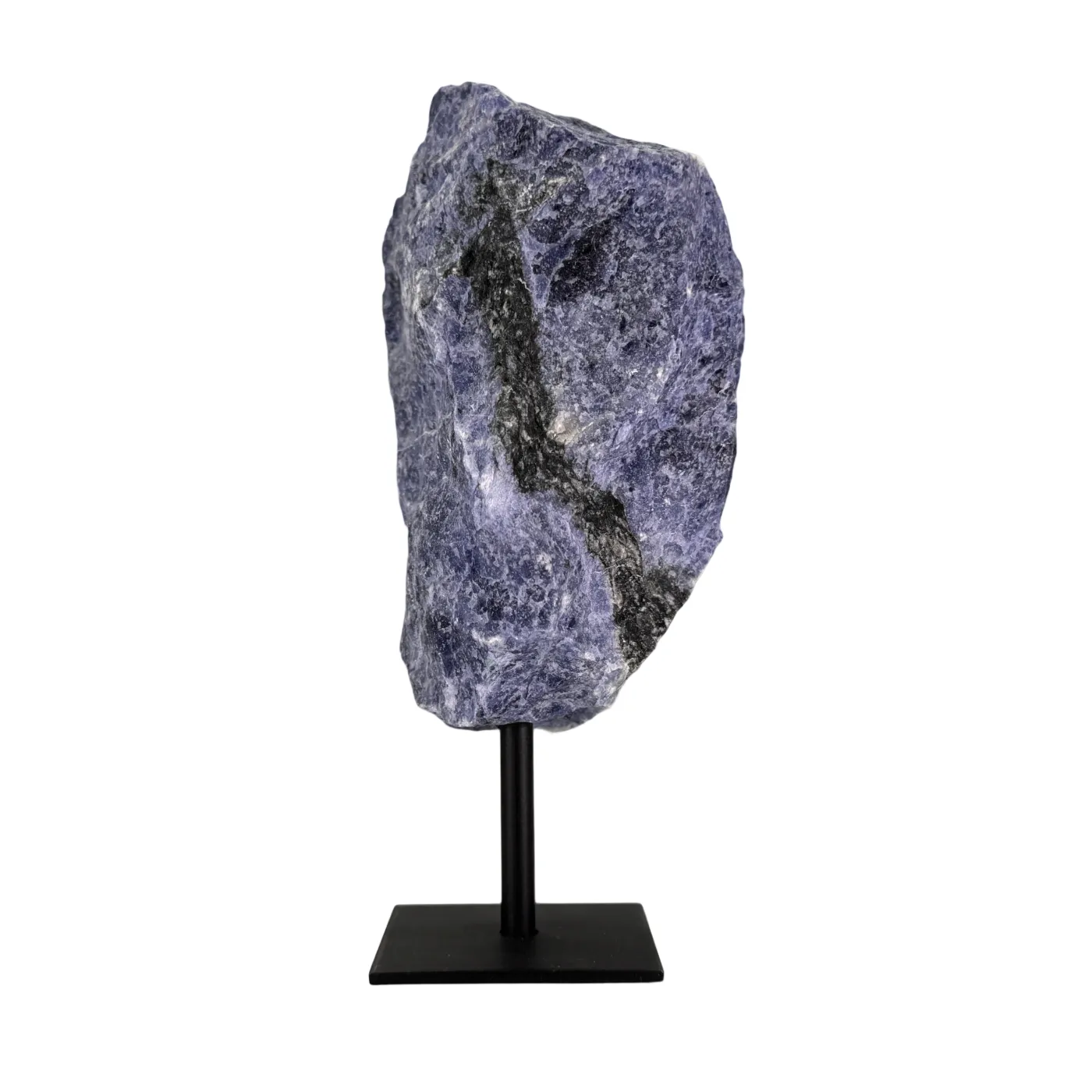 Ruwe Sodaliet op Zwarte Metalen Standaard – uit Brazilië