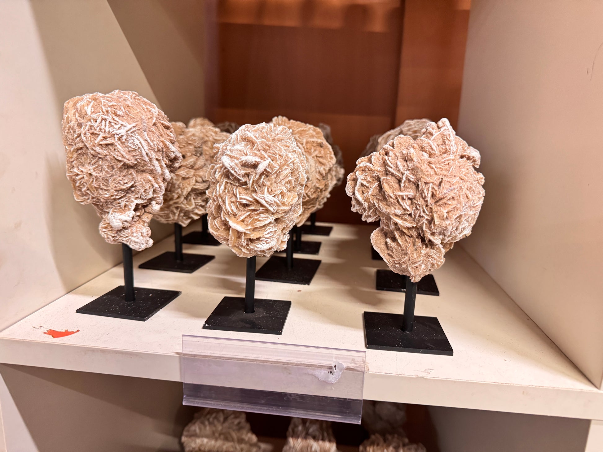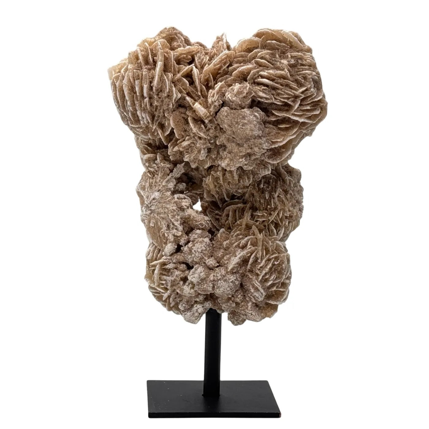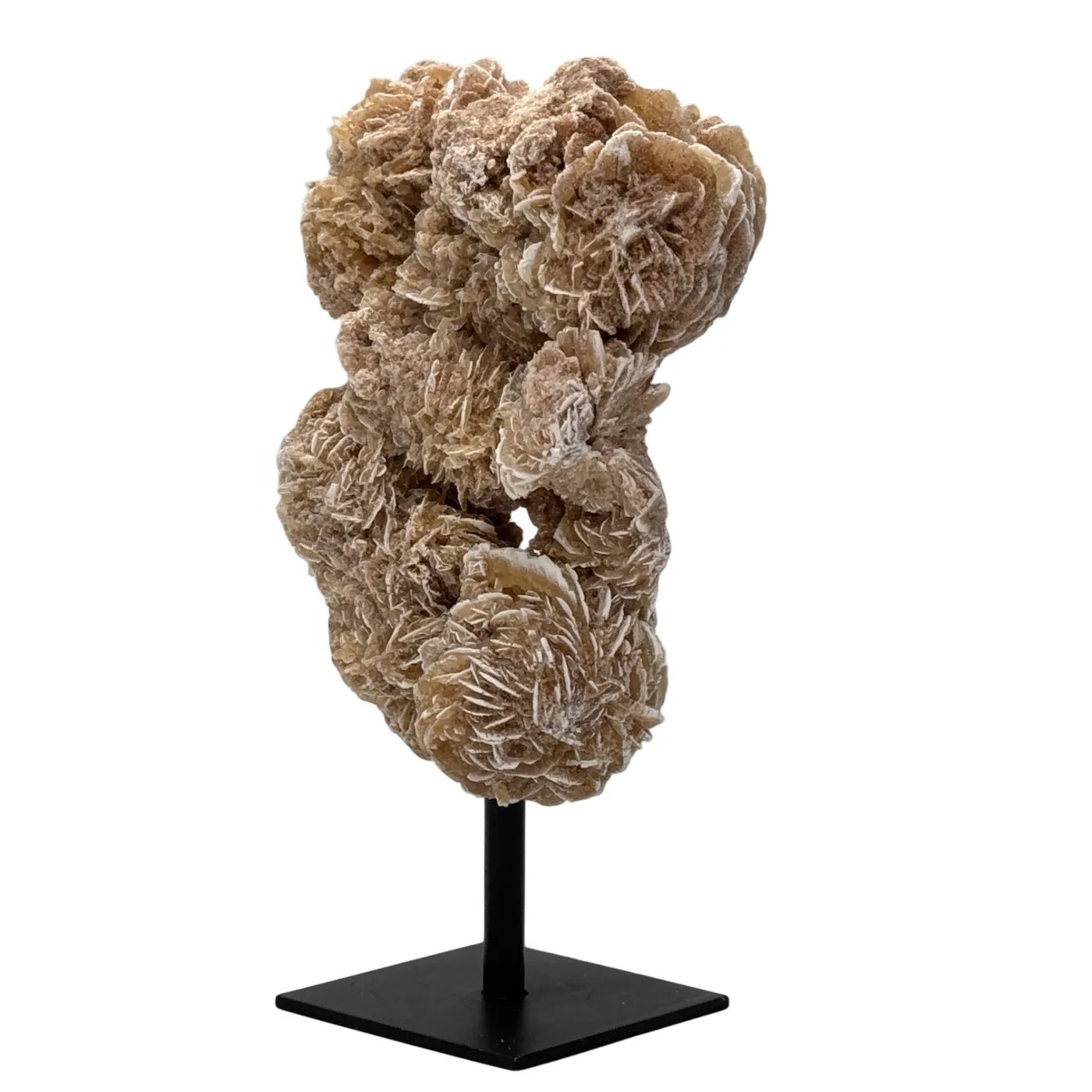 Prachtige natuurlijke woestijnroos op een elegante metalen standaard.